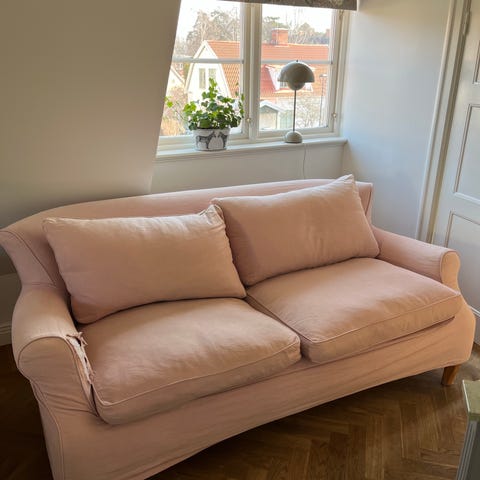 En av träbrädorna under soffan har släppt något (se bild). Det är sannolikt en enkel fix för den händige (eller mindre lata) troligen räcker det med lite trälim eller en skruv.