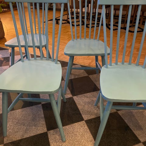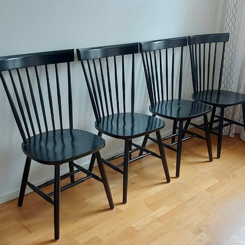 Säljer 4 mycket använda pinnstolar. Köptes vita, restaurerades och målades svarta för ca 5 år sedan.