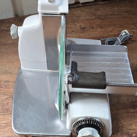 Siemens MS70002 skärmaskin med rostfri klinga 120 W. . Utrustad med rund skärskiva och justerbar skärtjocklek via vred på sidan. Maskinen har räfflad skärbricka och glidbricka för stabil placering av bröd, chark eller andra livsmedel. Passar för skivning av exempelvis bröd, ost och charkprodukter. https://www.siemens-home.bsh-group.com/se/kundservice/MS70002N/01#/Togglebox=spareparts/