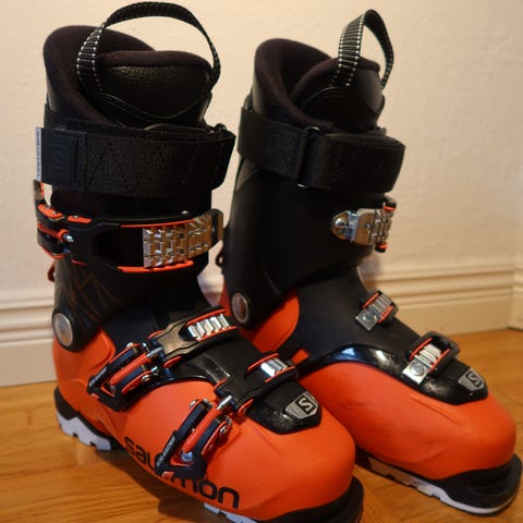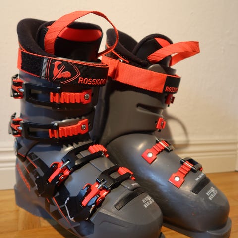 Endast använda en vecka på skidresa, därför i fint skick. Inga skador och alla spännen fungerar som de ska. Finns lite normalt kosmetiskt slitage på insidorna där skidorna har gått emot. Bekväma och stabila juniorpjäxor som passar bra för barn/ungdom som åker pist.