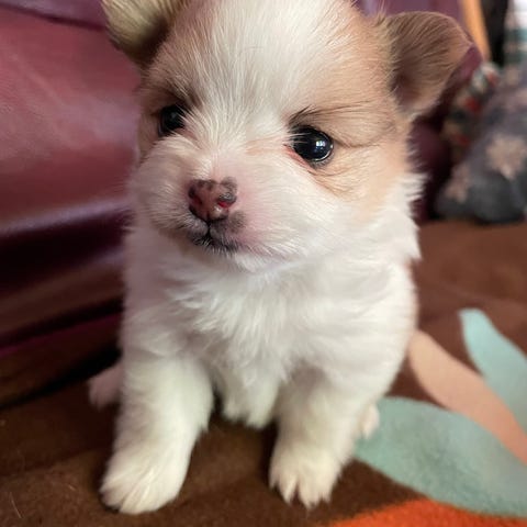 Väldigt liten tikvalp med malteserpappa och dvärgpudelblandis mamma.