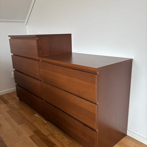 Jag säljer min byrå eftersom jag har flyttat. Det är en IKEA Malm-byrå med tre lådor, 80x78 cm. Ordinarie pris: 1195 kr