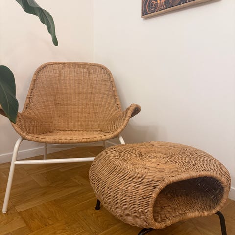 Fåtölj i rotting med metallstomme, IKEA PS Hjältön.