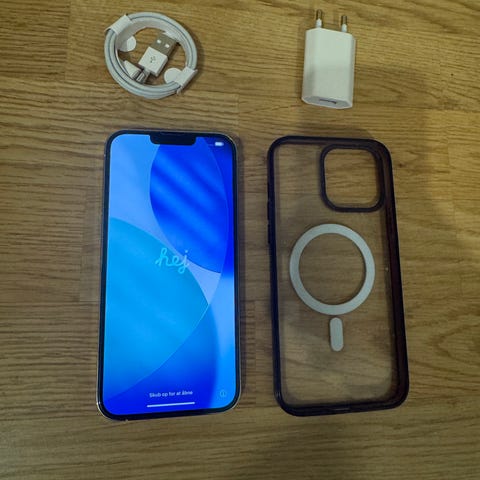 iPhone 13 Pro med 100% batterihälsa och 128 GB data. Allt fungerar förutom NFC, alltså apple pay. Skal, skärmskydd och laddare ingår. Nollställd och utloggad, ej operatörslåst. Pruta ej tack