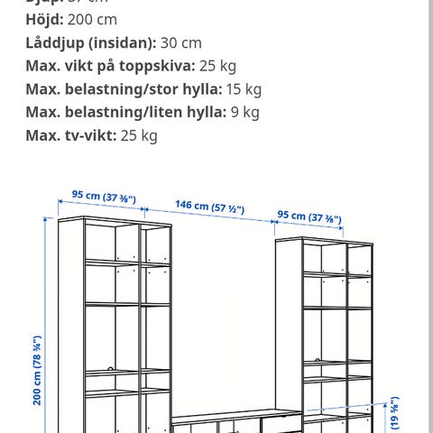 Bredd 118 cm djup 35 cm höjd 192 cm