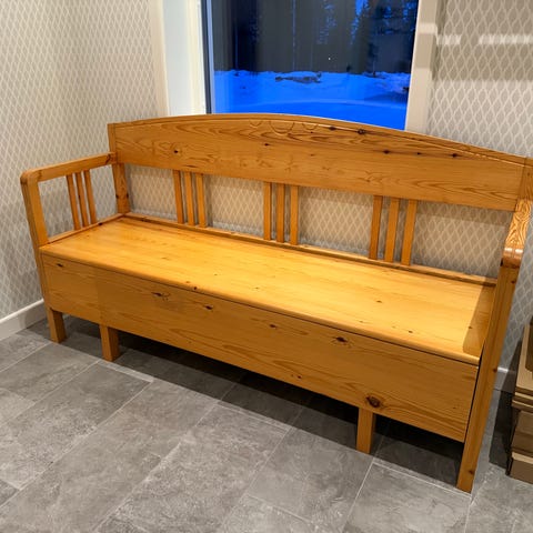 Kökssoffa med förvaring. Tyget på dynan kan behöva bytas