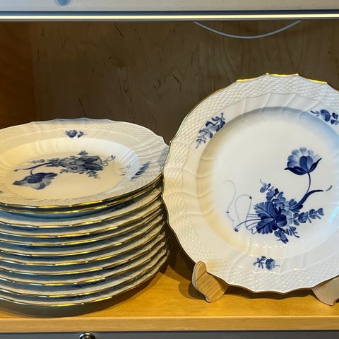 Royal Copenhagen Blå Blomster 12 st Förrättstallrikar med guldkant 10/1623