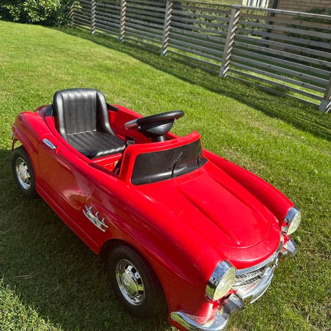 Aarikka elektrisk leksaksscooter i plast. Modellen är batteridriven och utformad som en mindre scooter för barn. Färgkombination med mörk kaross och ljusare sits. Leksaken är avsedd för barn i åldersgruppen cirka 3–8 år, enligt produktinformationen på bilden. Materialet är plast (PP) och fordonet har detaljer som fotstöd, hjul i plast och styrhandtag. Passar för lek utomhus på plana underlag, exempelvis gårdsplan eller uppfart, under uppsikt av vuxen