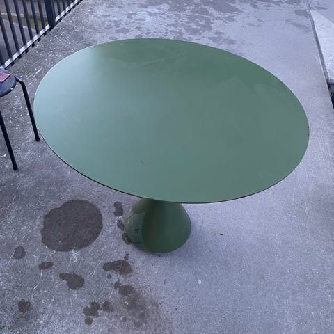 Runt bord med glasskiva i helt ok skick.