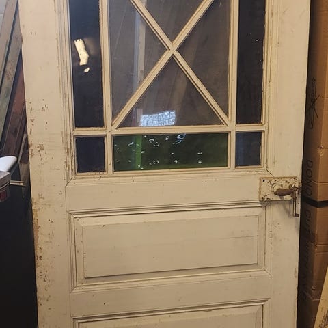 Äldre innerdörr, med handtag och lås. Mått 164 x 63.5 cm. Utan dörrkarm.