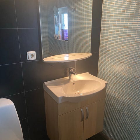 Underskåp är 90/75/33 och som djupast 43 då handfatet är rundat utåt.