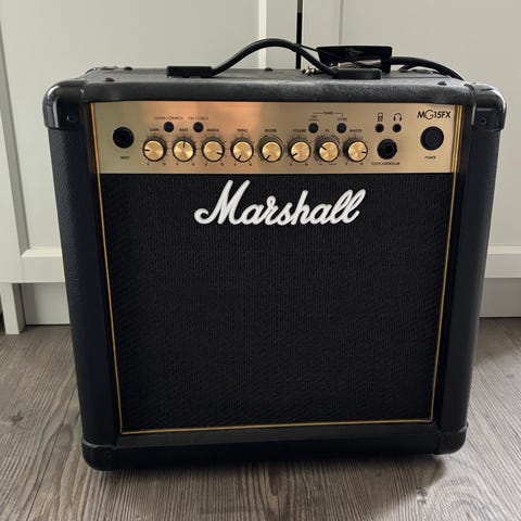 Marshall Haze rörförstärkare 40 starka watt. Unik modell som inte tillverkas längre. 2 kanaler, clean och " dirty " med boostcontroll, reverb, inbyggda effekter som chorus, delay mfl. Inklusive fotpedal och cover. Sparsamt använd och har stått i garderoben länge nog nu.