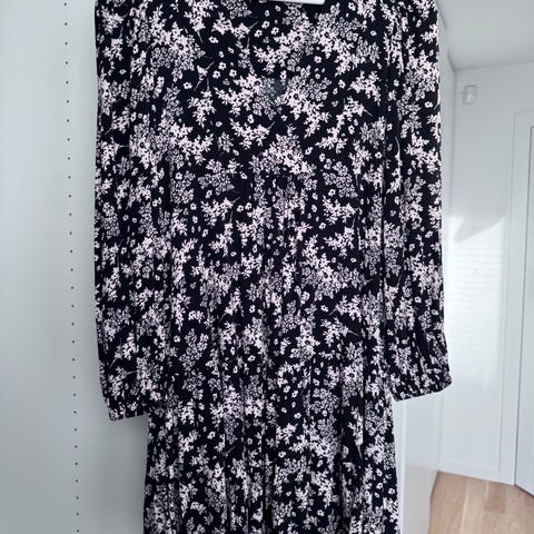 Festlig klänning i lite genomskinligt och superhärligt tyg av matt karaktär (se sista bilden). Volangkjolen har flera lager + en svart innerkjol så nederdelen är inte genomskinlig.