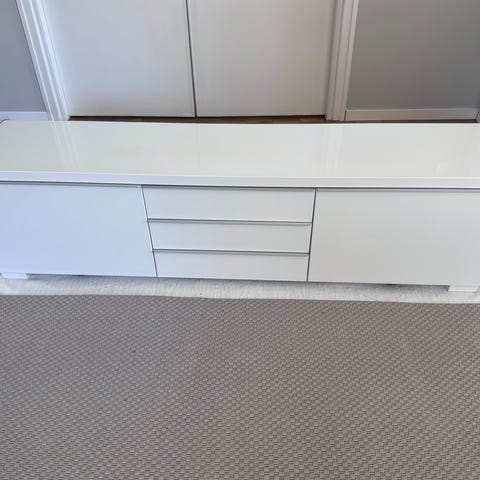Vit tv-bänk från ikea, robust modell med mycket förvaring.