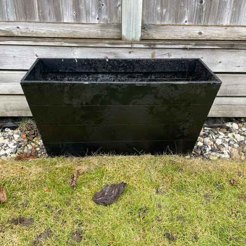 Rektangulär planteringslåda i metall med rostfärgad yta. Passar för odling av blommor, kryddor eller mindre buskar på altan, uteplats eller i trädgård. Kan användas tillsammans med spaljé eller stöd för klätterväxter. Placeras direkt på mark, sten eller trall beroende på önskemål.