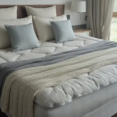 Featherbed är en lyxigt fluffig bäddmadrass fylld med fjäder och dun som ger din säng en överlägsen komfort och ytmjukhet. Madrassen placeras ovanpå bäddmadrassen.