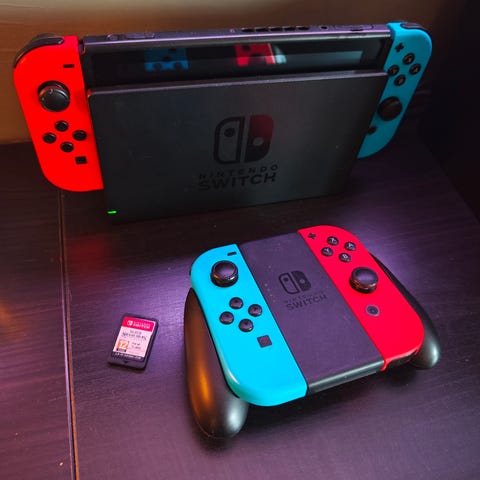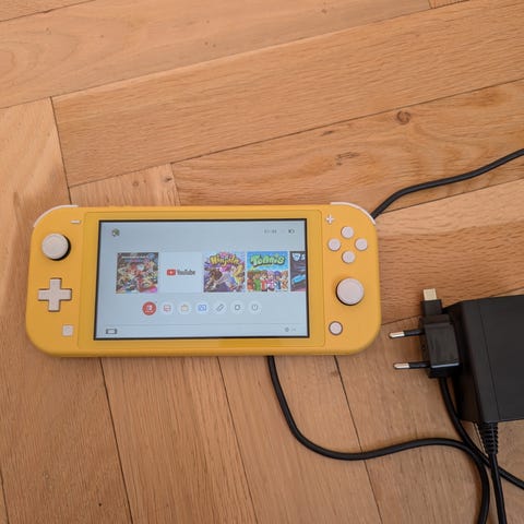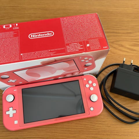 Nintendo Switch Lite spelkonsol med skyddsfodral. Laddare och en till fodral medföljer, samt microSD kort i enheten. Den har skyddsglas på sig. Fungerar perfekt.