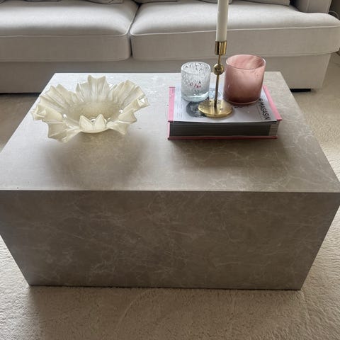Soffbord i aluminium & glas, köpt hos Ekeby Möbler. Ett bord man kan ha både ute och inne, vi har haft det i ett uterum.