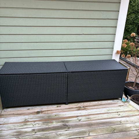 Balkonglådehållare i svart metall som kan användas för flera funktioner t ex hängare