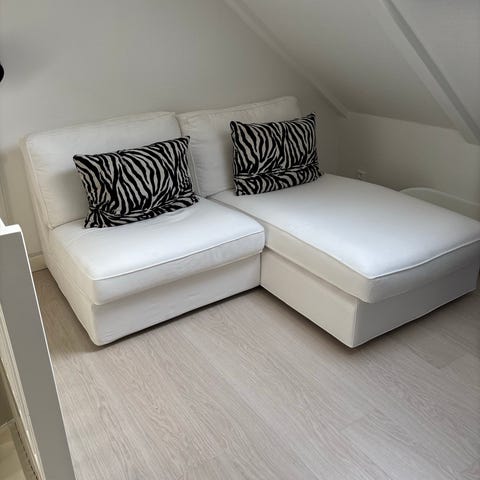 IKEA soffa 2-sits i beige tyg. Soffan har två sittdynor och två ryggdynor med avtagbar klädsel. Armstöd på båda sidor och hel tygklädsel ner till golvet. Passar i vardagsrum, gästrum eller mindre utrymmen där en kompakt tvåsitssoffa behövs.