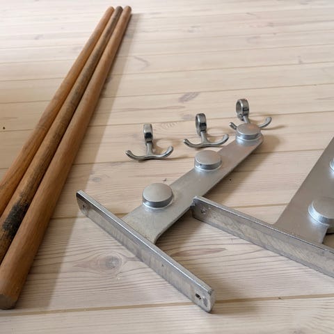 Nostalgi hylla från Essem Design med en klassisk, funktionell design som aldrig går ur tiden. Den har stabila konsoler i återvunnen aluminium och rundstavar i olika utföranden med tre avtagbara ankarkrokar.