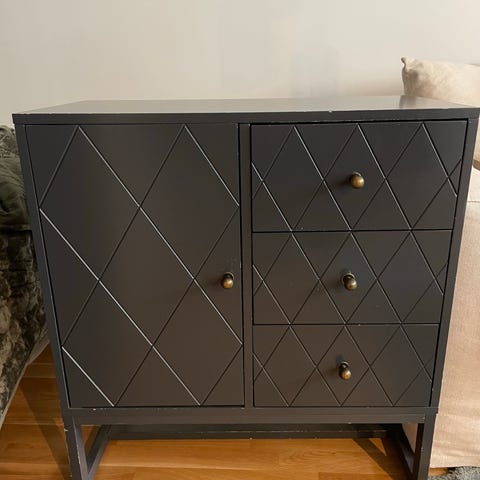 Skåp med jalusidörrar trä och metall
