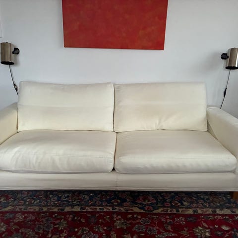 Soffan är i god skick men det finns viss synlighet för slitage på klädseln, se bilder