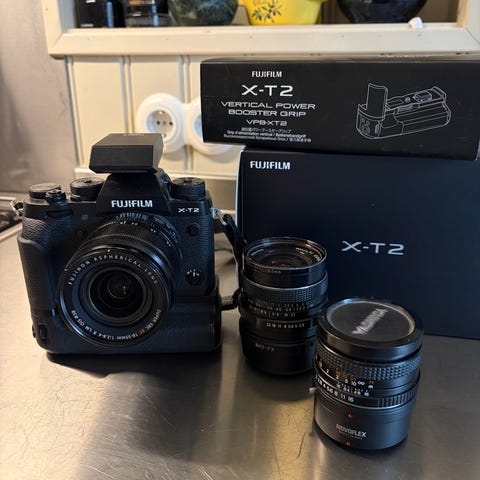 Medföljer gör batteri, laddare och ett minneskort samt objektivlock. Vill man kan man få med ett 7artisans 27mm f 2.8 för 500 kr extra.
