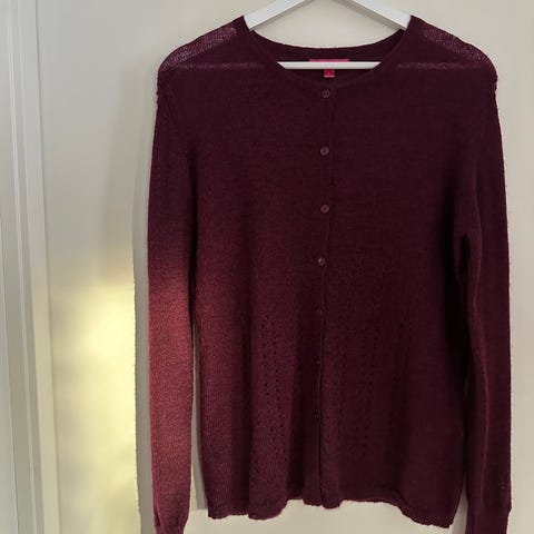 Lila stickad kofta, Stl L, från Indiska. Aldrig använd. Prislapp sitter ännu kvar. Säljes ej längre i butik.