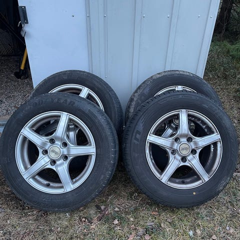 Fyra original fäljar med Bridgestone B250 sommardäck. Däcken går nog en säsong till, se bilder. Jag hjälper en kamrat att lägga ut däcken och första kontakten tas med mig. Hjulen finns att hämta i Vidingsjö i södra Linköping.