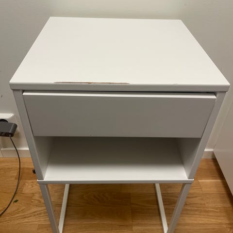 Säljer två stycken sängbord av typ Vikhammer. Inköpta på ikea och har monterade trådlösa mobilladdare i borden även dem från ikea och typen Nordmärke.