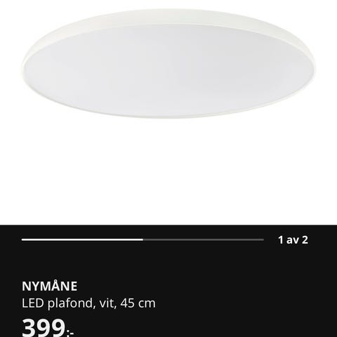 Säljer en plafond från tillverkaren Konsthantverk. 45 cm i diameter och har plats för tre ljuskällor (e27). Säljs fortsatt i butik. Enkel och stilren samt ger ett fint sken genom diffusorn som jämnar ut ljuset.