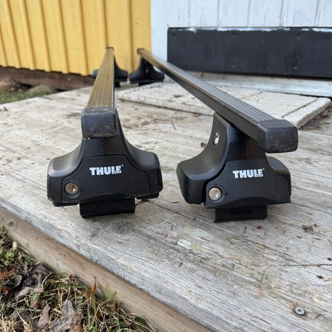 Thule takräcke i svart utförande. Består av två lastbågar med tillhörande fötter. Passar bil med kompatibelt takfästesystem enligt Thules specifikationer. Nycklar ingår!