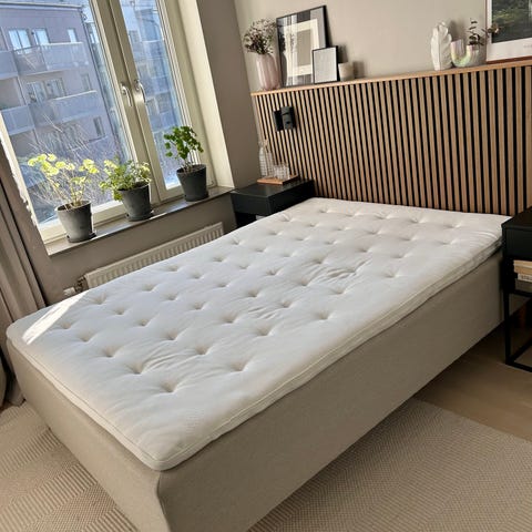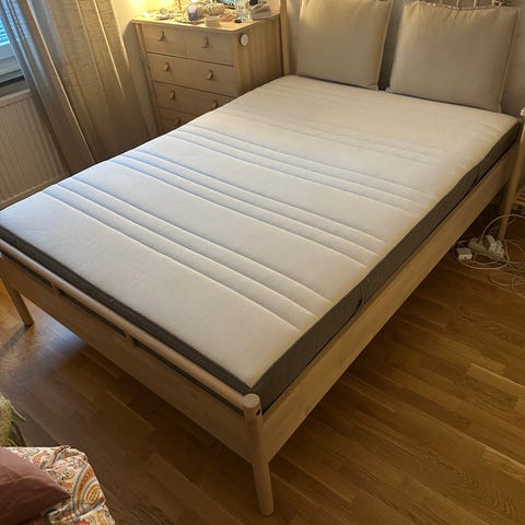 Säljer min sängram från IKEA, serien Björknäs, pga flytt. Stilren och stabil säng i massivt trä som passar i de flesta sovrum. Madrassen kan följa med om så önskas.
