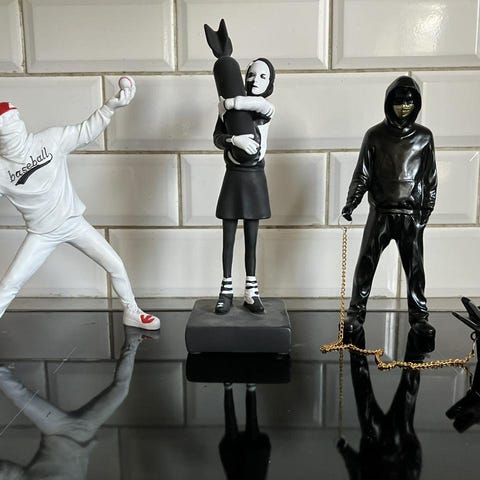 Aldrig skaffat en ram till canvas duken. Varit tillknycklad vid frakt. Motivet är 120x80. Banksy motiv
