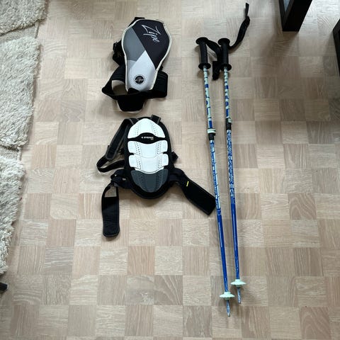 Hjälm, ryggskydd och stavar för barn
