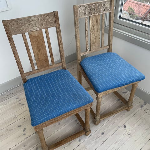 Två gamla stolar inköpta i butik på Spinneriet i Lindome