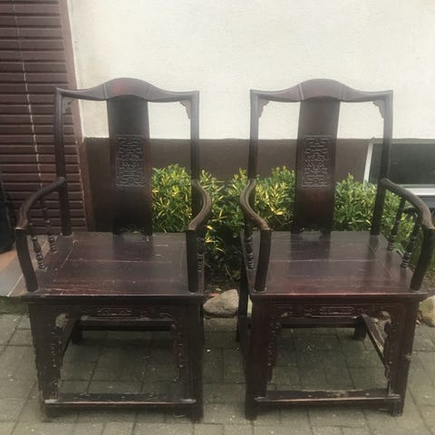 Kinesiska karmstolar i Ming-stil – handskurna – 2 st