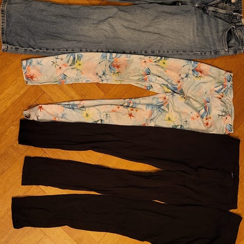 Jeans och leggings barnbyxor stl 152 flicka ljusblå och grå