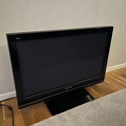 46-tums TV:n fungerar bra. Stativet saknar skruvar, men den står stabilt ändå och har använts så i flera år. Man kan enkelt sätta i egna skruvar om man vill.