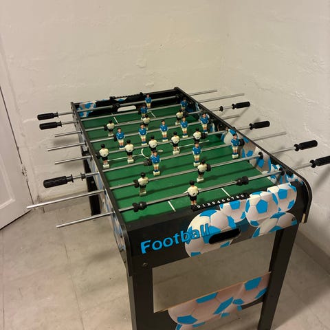 Fotboll spelbord kombinerat med fotbollsspel, biljardbord, pingisbord och airhockey. Bordet har fotbollsplan med spelare monterade på metallstänger, separat skiva för bordtennis med nät och racketar samt skiva för airhockey med mål och spelpuckar. Passar för inomhusbruk, just nu så saknar den biljardboll nr 13 kan hända att jag hittar den dock, har sett den nånstans:) men det går ändå att spela och ha kul med..