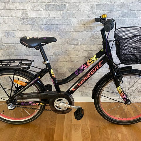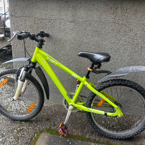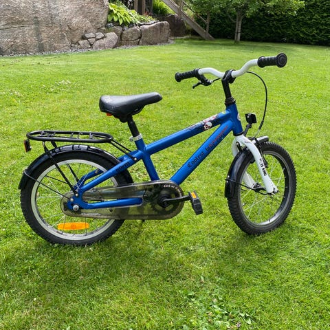 Barncykel med 20" hjul i blå färg. Utrustad med fram- och bakskärm. Passar barn som är redo för cykel i 20-tumsstorlek, exempelvis för cykling till skola och fritidsaktiviteter.