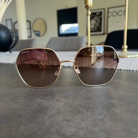 Ett par Saint Laurent solglasögon, modell SL 692 i grått glas med silverfärgad båge. De har använts vid 1 tillfälle, men kommer dessvärre inte till användning eftersom jag föredrar guld-detaljer.