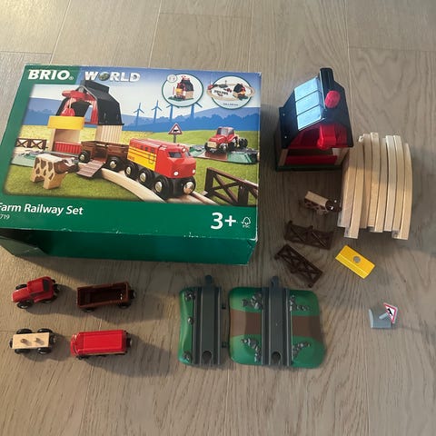 BRIO Safari Adventure Set tågset i trä. Setet innehåller träräls som kan byggas som en bana, safariinspirerade tillbehör som klippor, träd och vattenhål samt safari fordon. Med följer också flera djurfigurer, bland annat giraff, lejon och flodhäst. Passar ihop med BRIOs övriga trätågssystem och är avsett för barn från 3 år och uppåt. En liten kamera saknas, men inget som påverkar funktionen. Annars är allt komplett. Skickas ej, hämtas på plats i Nödinge, cirka 10 minuter utanför Kungälv.