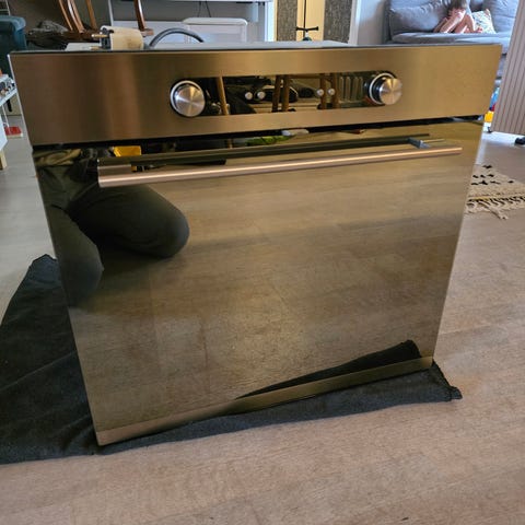 Inbyggnadsugn från IKEA med varmluft i rostfritt stål. Passar 60cm skåp. Smutsigt men fungerar perfekt.