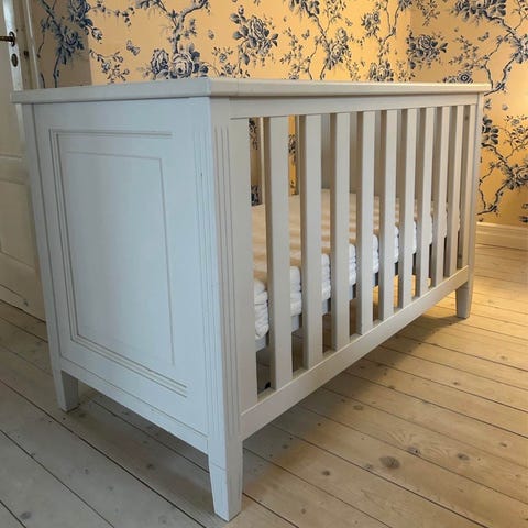 Säljer en mycket fin spjälsäng från Englesson i vit färg. Klassisk och stilren modell med fina detaljer som passar i de flesta barnrum.