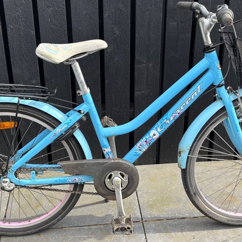 Barncykel Sjösala med 24" hjul, i blå färg. Cykeln har lågt insteg, svart sadel och raka styren. Utrustad med framkorg, pakethållare bak, skärmar och stöd. Passar som vardagscykel för barn i åldern 8-11 år (ca.), exempelvis till skola och fritidsaktiviteter. Originalkvitto finns. Cykeln köptes ny i dec 2022 och dess ordinarie pris då var 4995kr.