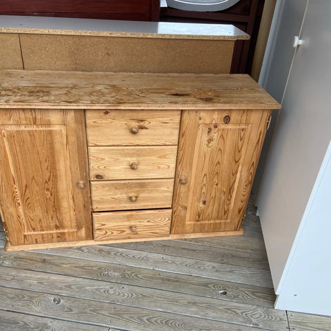Skick Fint begagnat skick med normalt slitage. Träytan är stadig och möbeln står stabilt.
