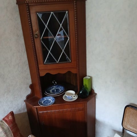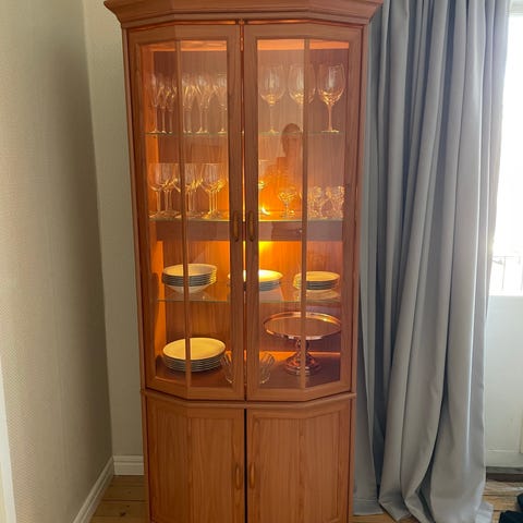 Fint hörnskåp. Nyckel saknas men går att öppna med t.ex. insexnyckel