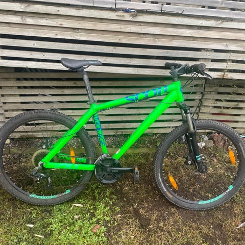 Ghost barncykel med 24" hjul i grön färg. Cykeln har framgaffel med dämpning, handbromsar och växlar med reglage på styret. Utrustad med reflexer och stöd.